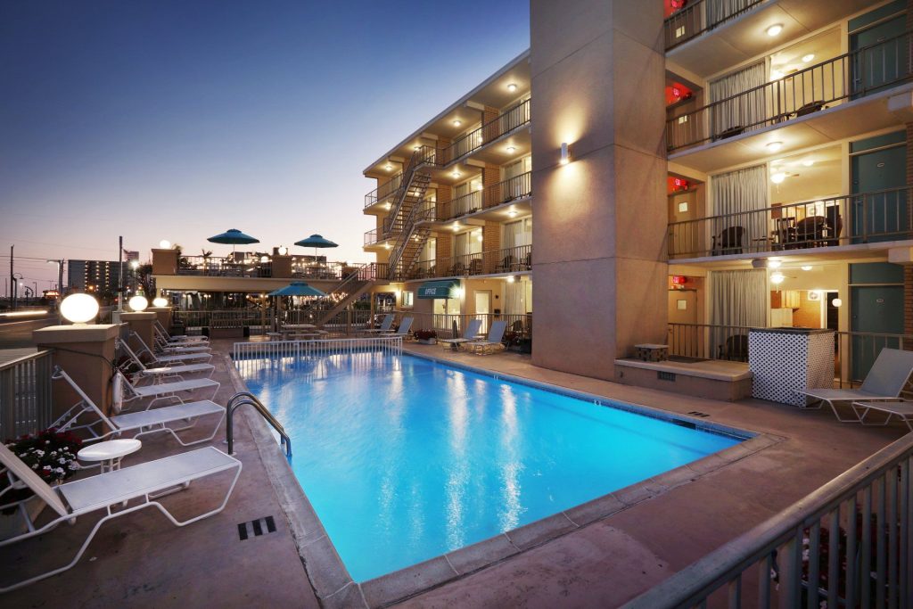 Each day brings its own excitement, as you frolic in the rolling surf, sunbathe on the wide, clean beach, or lounge and swim in our sparkling heated pool while the kiddies enjoy their own safe pool. Relax in the daylong sunshine, cook out on our barbeque grills. At night you can visit the action, glamour and fast-paced entertainment of nearby Atlantic City.